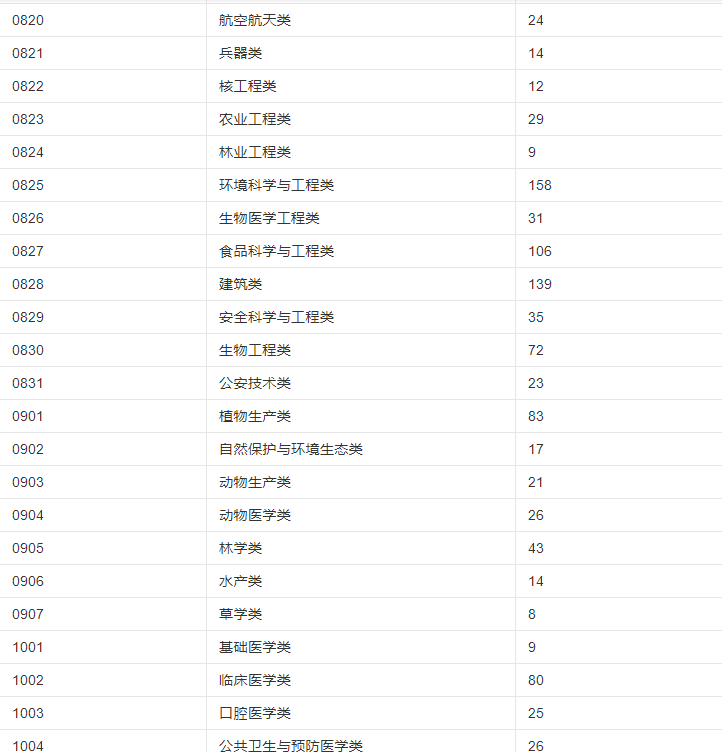 中國農(nóng)業(yè)大學(xué):生物學(xué)、農(nóng)業(yè)工程、食品科學(xué)與工程、作物學(xué)、農(nóng)業(yè)資源與環(huán)境、植物保護(hù)、畜牧學(xué)、獸醫(yī)學(xué)、草學(xué)。