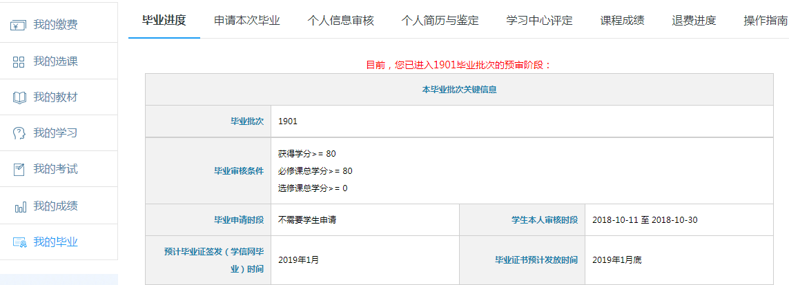 B.已開通畢業(yè)申請,頁面顯示如下: