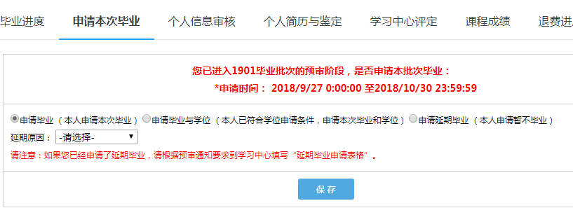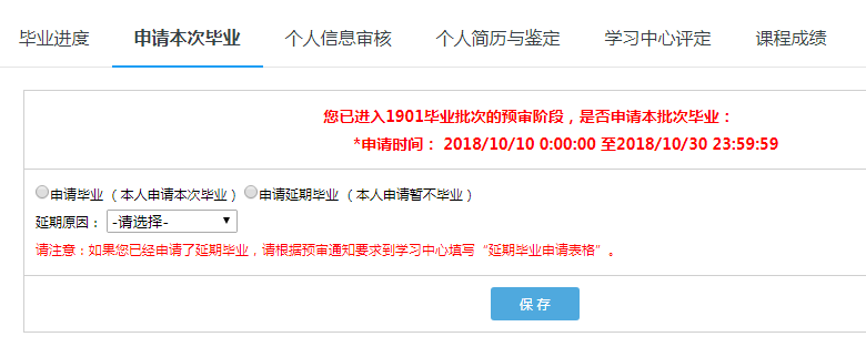 A.未開通畢業(yè)申請(如高校無延期畢業(yè)政策,則不需操作畢業(yè)申請,高校默認(rèn)所有學(xué)生滿足條件后畢業(yè)),