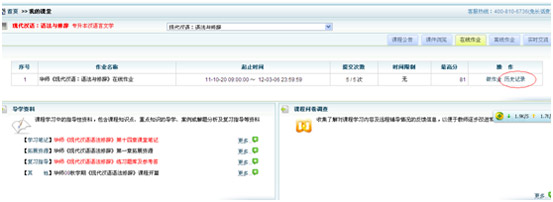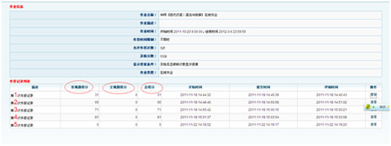 ? ? ? ?  點(diǎn)擊“歷史記錄“如圖13-7所示,可看到歷次作業(yè)得分情況。