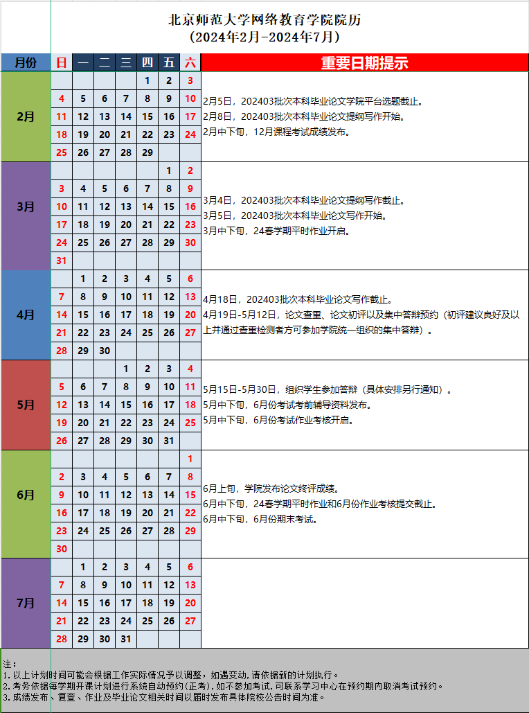 3.24春學(xué)期北京師范大學(xué)網(wǎng)絡(luò)教育學(xué)院院歷(2024年2月-2024年7月).xls