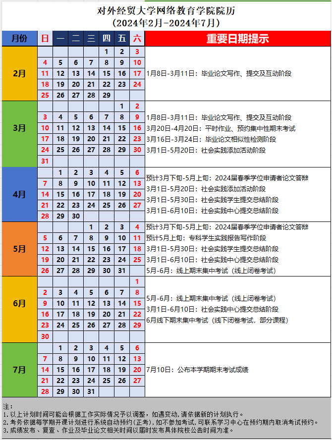 12.24春學(xué)期對外經(jīng)貿(mào)大學(xué)網(wǎng)絡(luò)教育學(xué)院學(xué)期院歷(2024年2月-2024年7月).xlsx