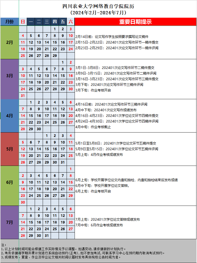 6.24春學(xué)期四川農(nóng)業(yè)大學(xué)網(wǎng)絡(luò)教育學(xué)院院歷(2024年2月-2024年7月).xlsx