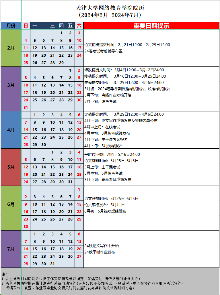 14.24春學期天津大學網(wǎng)絡(luò)教育學院院歷(2024年2月-2024年7月).xls