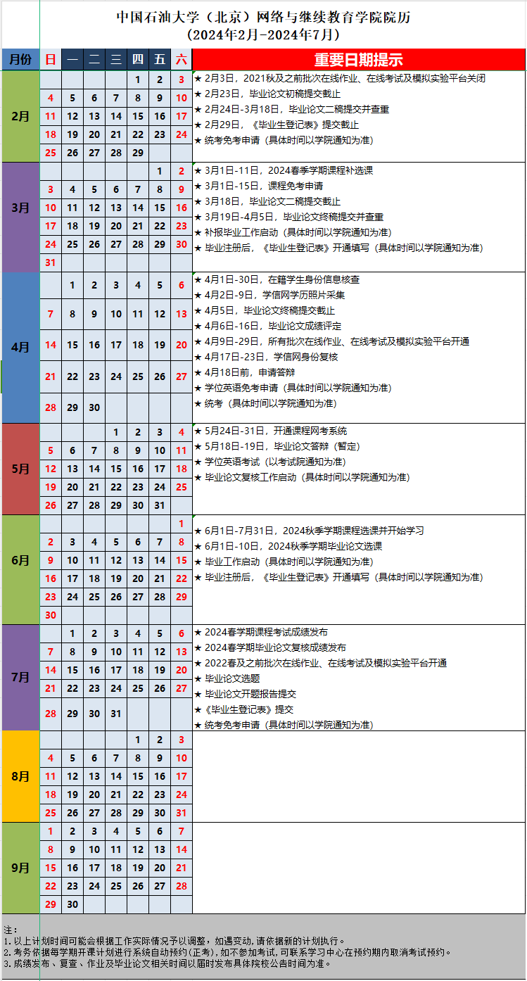 31.24春學(xué)期中國(guó)石油大學(xué)(北京)網(wǎng)絡(luò)與繼續(xù)教育學(xué)院院歷(2024年2月-2024年7月).xlsx