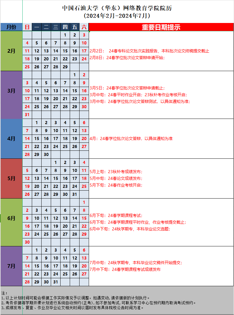 17.24春學(xué)期中國石油大學(xué)(華東)網(wǎng)絡(luò)教育學(xué)院院歷(2024年2月-2024年7月).xls