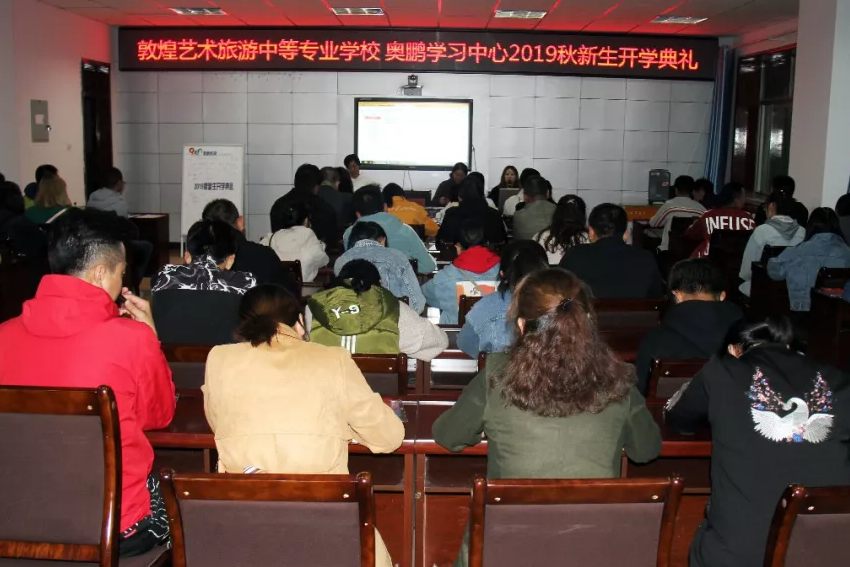 金秋送爽的季節(jié),敦煌藝術(shù)旅游中等專業(yè)學(xué)校奧鵬學(xué)習(xí)中心又迎來了一個(gè)新學(xué)期。在這象征豐收的季節(jié),敦煌藝術(shù)旅游中等專業(yè)學(xué)校奧鵬學(xué)習(xí)中心2019年秋季新生開學(xué)典禮在實(shí)訓(xùn)樓云教室415隆重舉行,共計(jì)有五十多名學(xué)子參加。